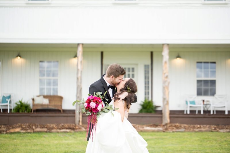 Shelby and Patrick were married at the beautiful new Kindred Barn in Northwest Arkansas. Her stunning Calla Blanche gown from Inverness Bridal in Conway was unlike any dress we’ve ever seen and definitely stopped Patrick in his tracks! Shelby is an avid lover of the outdoors, and specifically chose this venue not just for its beauty inside, but the gorgeous land it sits on. The extended forecast, all the way up until the wedding day, showed between 90-100% chance of heavy rain and thunderstorms ALL day. We were disappointed for Shelby, but grateful for the beauty of the inside of Kindred Barn. And you know what happened? Despite the gloomy forecast, the rain completely stopped MINUTES before their First Look!! It wasn’t supposed to happen. It was supposed to be dumping buckets! They were able to have their First Look and all of their portraits outside in front of the barn and in the vineyard!! The raindrops started to gently fall just as we were finishing up to head in for the ceremony! You can even see the rain in the last few portraits!